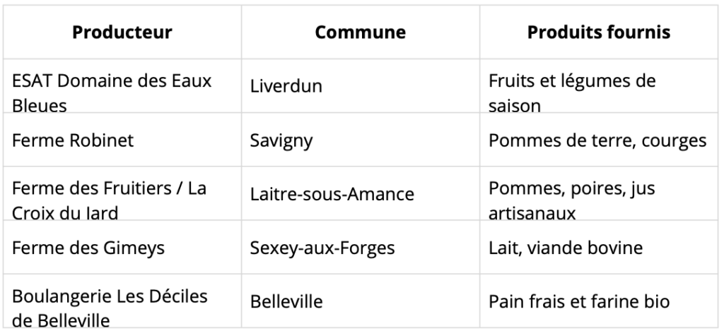 - Priorité donnée aux produits frais, de saison et d’origine locale ou française.